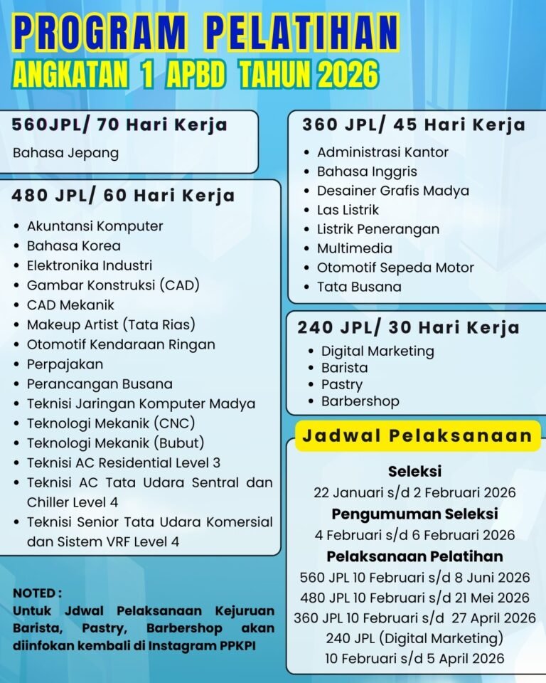 Hi teman PPKPI!! Pusat Pelatihan Kerja Pengembangan Industri (PPKPI) sudah membuka kembali pendaftaran untuk angkatan 1 2026.